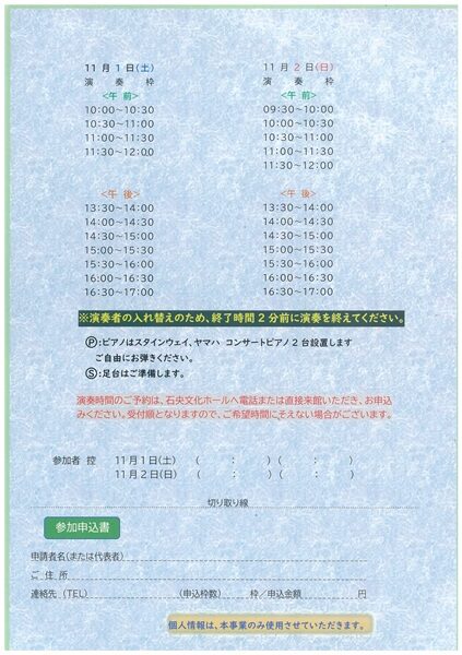 ★どなたでも参加できます。ピアノ演奏は、石央文化ホールへ来館またはお電話にてお申し込みください。