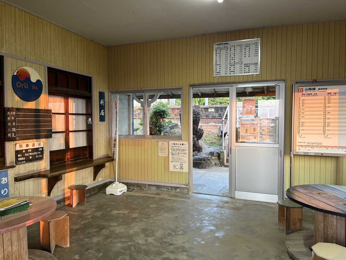 折居駅は、浜田駅から山陰本線で向かう場合、益田方面へ3駅目、乗車時間約20分で到着します