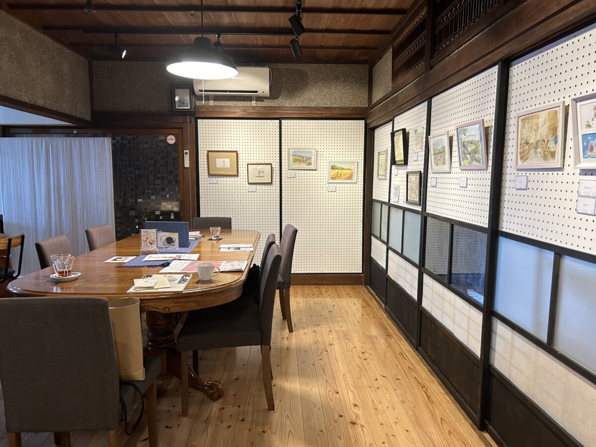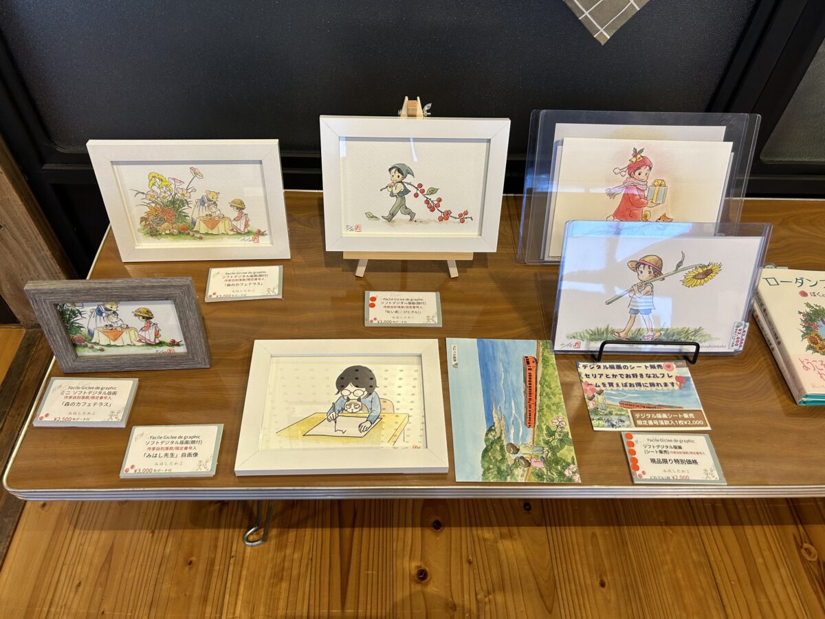 取材時は、石見地域の生活情報紙「いわみりびえーる」の表紙絵などで知られる、江津市在住のイラストレーター みはしたかこさんの作品展が開催されていました。