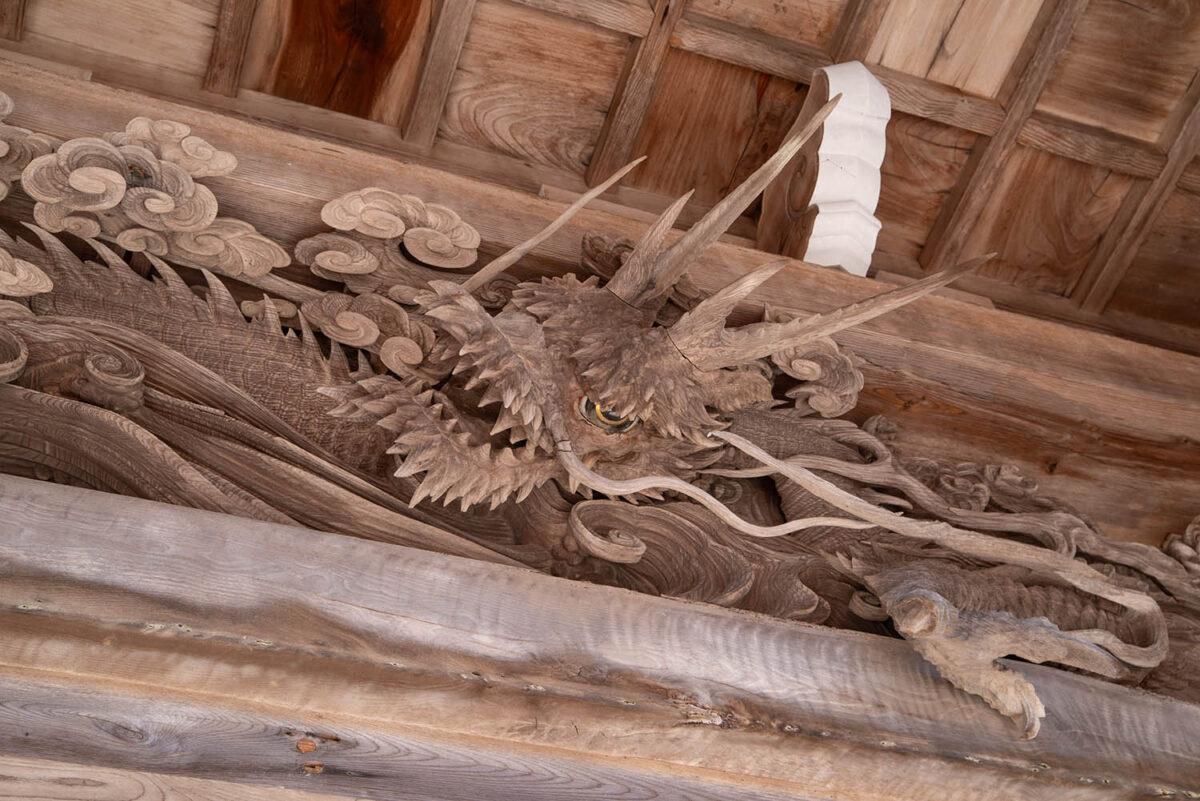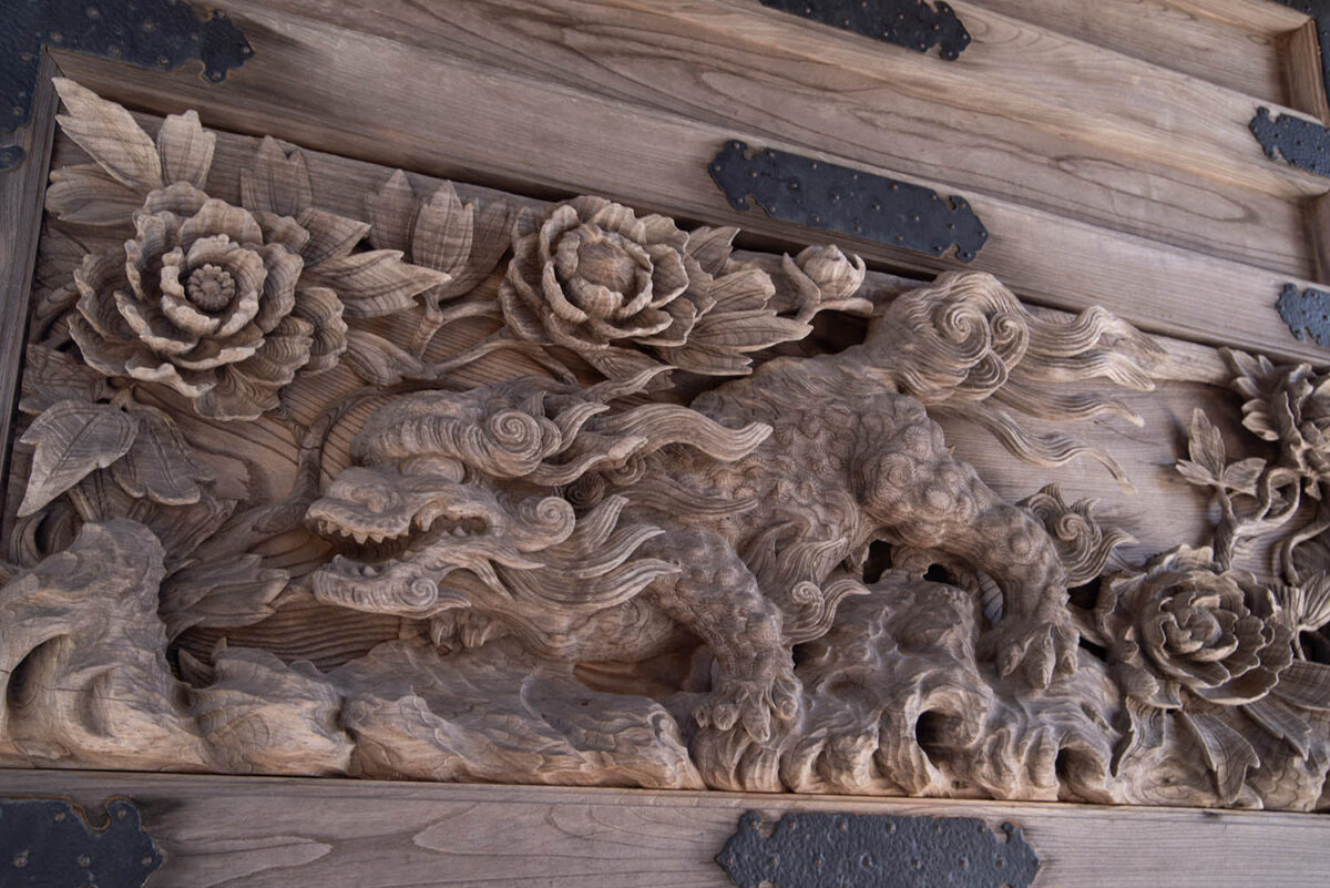 | 備考 | 豊原喜一郎作の門には欄間に迫力のある龍、扉には晴雨を見事に彫り分けた牡丹に唐獅子の彫刻「陰陽照り降りの獅子」が彫られています。 各所に彫られた「波に兎」「海老虹梁」「葡萄リス」「鳳凰」「ビワ食いの猿」「瓜食いねずみ」などの精巧な彫刻を探すのも楽しめます。 寛政4年(1792年)建立の本堂は天井に「大鳳凰」が描かれ、両余間には「雪持之松」「雪中蘆雁」の襖絵があり荘厳な雰囲気をもちます。 |